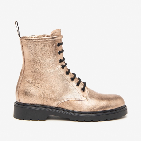 Anfibi Donna Nero Giardini I412006D colore oro. Anfibi donna in pelle con fondo in gomma e sottopiede DriGo. Chiusura laterale per facilitare la calzata.