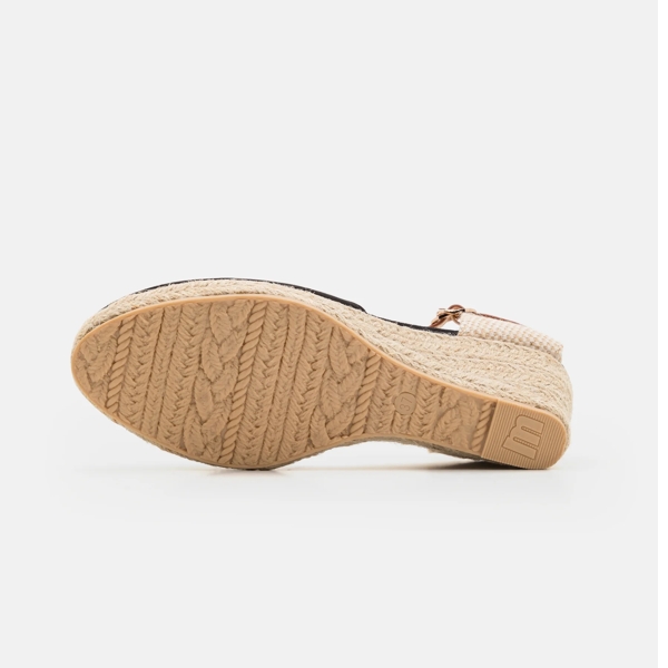 Espadrillas Donna MTNG AUSTEN rif. 52194. Sandalo Austen Mustang, realizzato in colore sabbia con comodo sottopiede in pelle. Ha un originale design intrecciato di iuta lungo la zeppa. Punta chiusa e tallone aperto. Cinturino alla caviglia con chiusura a fibbia per un maggiore sostegno del piede. Altezza 8 cm.