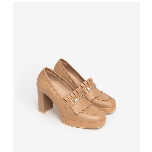 Mocassini Donna Nero Giardini E409461D colore corda. Mocassini donna in pelle con fondo in gomma e chiusura con cinturino.