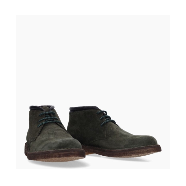Polacchini Uomo Kebo BA2001 colore verde. Polacchino con tomaia in vera pelle scamosciata, fodera in vera pelle, sottopiede imbottito, suola in gomma cucita leggera e flessibile. Prodotto Italiano.