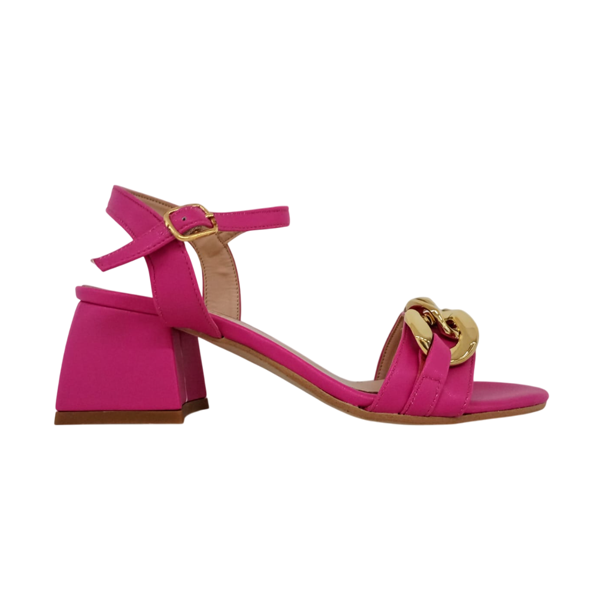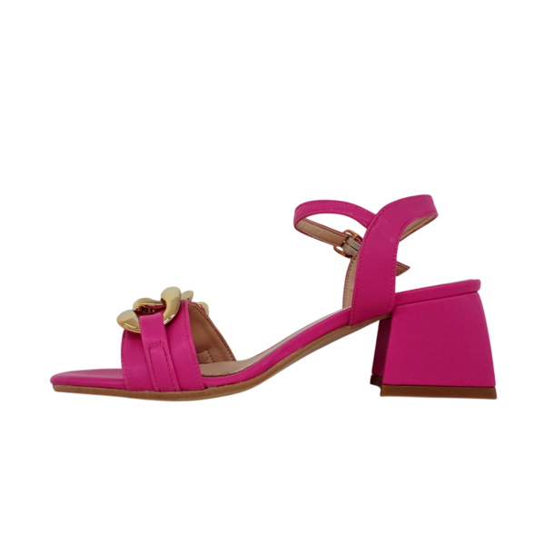 Sandali Donna Shoe Shop 1078 colore fuxia. I sandali donna a marchio Shoe Shop art. 1078 in un vivace colore fuxia sono la scelta perfetta per chi desidera unire eleganza, comfort e un tocco di audacia. Questi sandali, espressione dell’autentica artigianalità Made in Italy, sono ideali per valorizzare ogni outfit estivo, aggiungendo un accento di colore vibrante e di tendenza. La tomaia in vera pelle di alta qualità offre una morbidezza eccezionale e una calzata avvolgente, adattandosi con naturalezza al piede. Il tacco di 5 cm assicura la giusta elevazione per slanciare la figura con eleganza e stabilità, rendendoli confortevoli anche per un uso prolungato. L’elemento distintivo è la catena dorata posizionata sulla fascia anteriore, che conferisce un tocco glamour e ricercato. Il fondo in gomma garantisce un’ottima aderenza e flessibilità, per un passo sicuro e ammortizzato. Ogni paio di sandali Shoe Shop è il risultato di una meticolosa lavorazione artigianale, curata nei minimi dettagli per offrirti un prodotto di eccellenza. Un accessorio versatile e indispensabile per la tua estate, che unisce la bellezza del design italiano alla qualità dei materiali.
