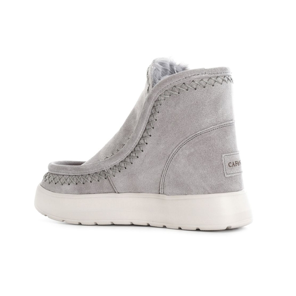 Stivaletti Donna CafèNoir C1DZ6001 colore grigio. Stivaletti donna in pelle scamosciata con fondo in gomma e fodera in pelliccia sintetica. Altezza tacco 4 cm.